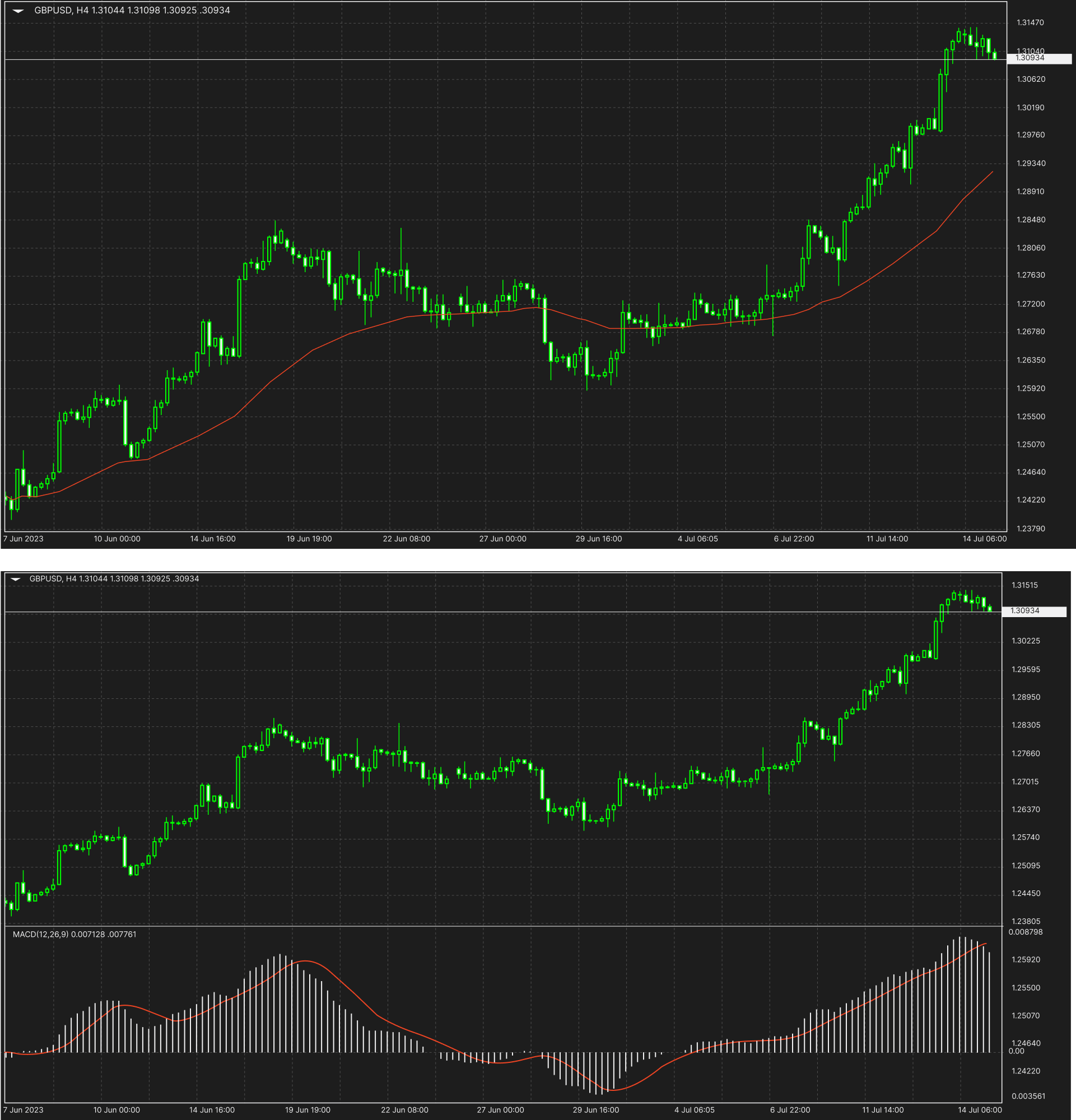 The Moving Average Convergence/Divergence (MACD) is a trend-following momentum indicator that shows the relationship between two moving averages of an instrument's price.The MACD is calculated by subtracting the 26-period EMA from the 12-period Exponential Moving Average (EMA).